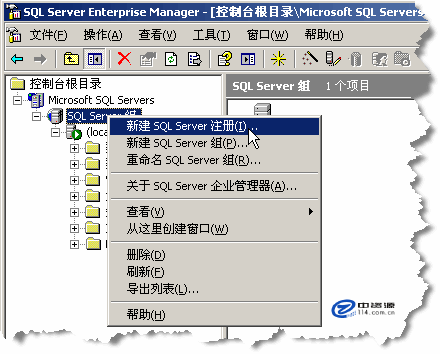 二、右鍵點擊“SQL Server組”選擇“新建SQL Server注冊”如【圖2】: