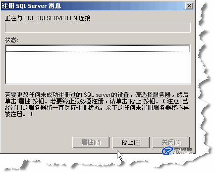 九、這時候SQL企業(yè)管理器將提示“正在與 SQL.SQLSERVER.CN 連接”(“SQL.SQLSERVER.CN”將顯示為您的SQL數(shù)據(jù)庫服務器地址 就是【圖4】中您所輸入的地址),如【圖9】所示: