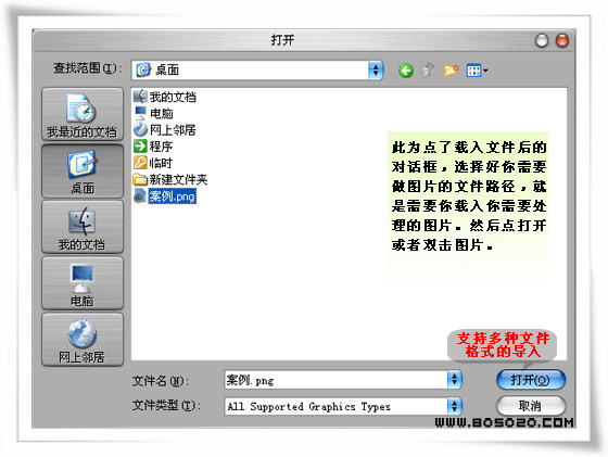 恩。找到你圖片的地方。這里我為了演示方便放到了桌面。你可以在你電腦的其它位置去找你想要的文件。