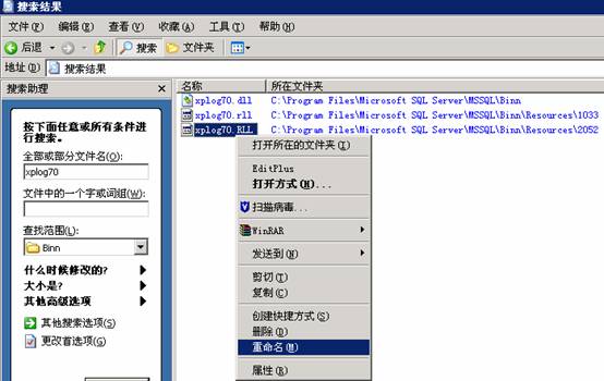 4.安裝好SQL后進(jìn)入目錄搜索 xplog70 然后將找到的三個(gè)文件改名或者刪除.