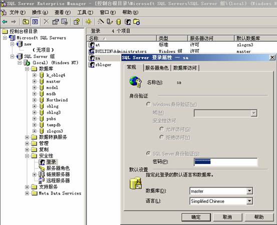 5.更改sa密碼為你都不知道的超長(zhǎng)密碼,在任何情況下都不要用sa這個(gè)帳戶.