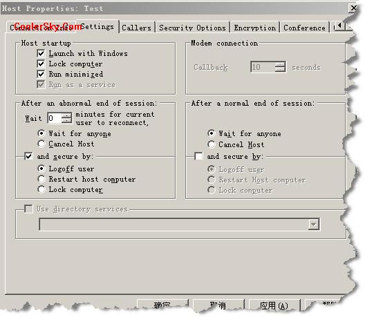 “After a normal end of session(會(huì)話(huà)正常結(jié) 束后)”指的是當(dāng)一次連接會(huì)話(huà)正常結(jié)束后,我們可以設(shè)置是否退出 PCAnywhere或者等待下一次連 接;