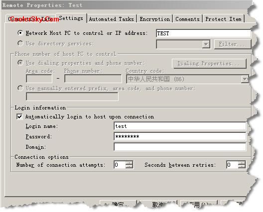 “登錄信息”連接后自動(dòng)登錄到被 控端,添入完整的登陸信息后,就可以保存登錄到遠(yuǎn)程被控端所需的用戶(hù)帳號(hào)與密碼,而實(shí)現(xiàn)自動(dòng)登錄。