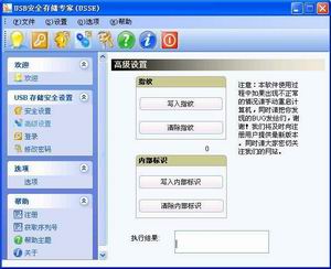 是否有這樣的疑慮:當(dāng)你攜帶USB移動存儲設(shè)備外出,而不小心遺失了裝有重要數(shù)據(jù)的USB存儲設(shè)備,從而導(dǎo)致你的重要數(shù)據(jù)被別人讀取給自己帶來巨大損失。使用USSE的“內(nèi)部標(biāo)志”功能,就相當(dāng)于給你的USB移動存儲設(shè)備作了加密處理,此設(shè)備將完全不可使用,除非你使用本機的USSE對它進行了“清除內(nèi)部標(biāo)志”處理。方法很簡單,同樣是先插入USB存儲設(shè)備,再點擊軟件任務(wù)欄的“高級設(shè)置”選項,在出現(xiàn)的頁面中點擊“寫入內(nèi)部標(biāo)志”按鈕,等待5秒倒計時結(jié)束后便可成功寫入內(nèi)部標(biāo)志了,這樣你便可放心地攜帶裝有重要數(shù)據(jù)的USB存儲設(shè)備出門,即使設(shè)備丟失也不會造成數(shù)據(jù)丟失,是不是很方便?