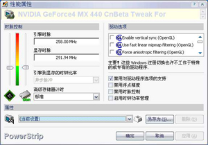 安裝并啟動PowerStrip后,在系統(tǒng)托盤處會出現(xiàn)顯示器圖標(biāo),鼠標(biāo)右鍵點擊,依次選擇“性能屬性→配置”命令,出現(xiàn)“性能屬性”對話框(圖3),最左側(cè)顯示的是頻率控制,你可以在這里調(diào)整你顯卡的頻率,從而增加顯卡的性能,注意距離紅線處越近危險越大,千萬不要太過貪心使勁超頻,以免燒毀你的顯卡。一般來說將顯卡頻率向上超過默認(rèn)頻率的1/5是比較安全的,因顯卡做工質(zhì)量而異。