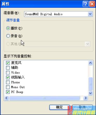 小提示:在“音量控制”窗口中,單擊“選項→高級控制”,然后點(diǎn)擊“麥克風(fēng)”下的“高級”按鈕,在打開的對話框中取消對“Mic Boost(話筒增強(qiáng))”項的選擇,否則會有非常大的雜音和回音。