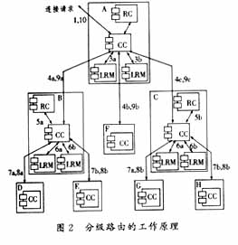 (8) 當(dāng)完成本連接的建立后,最低等級(jí)子網(wǎng)D、E、F、G和H中的CC將向源節(jié)點(diǎn)A的CCA返回連接建立成功的證實(shí)信號(hào)(如圖2中的步驟8a、8b及9a、9b和9c),最后,源節(jié)點(diǎn)A的CCA將向用戶網(wǎng)絡(luò)返回連接建立成功的證實(shí)信號(hào)(如圖2中的步驟10).