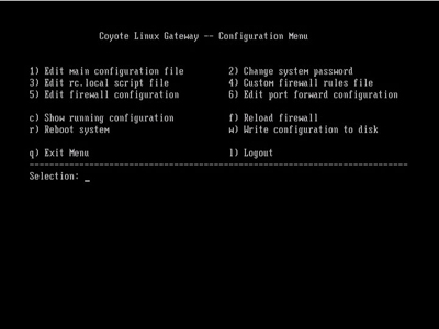 coyote Linux(北美土狼)是一款非常小巧方便的軟件路由器和防火墻軟件,它以一張軟盤為載體,可以使用一些比較古老的機器做為代理防火墻,而它的功能卻很強大,本文簡要介紹一些coyote Linux的安裝及配置使用。