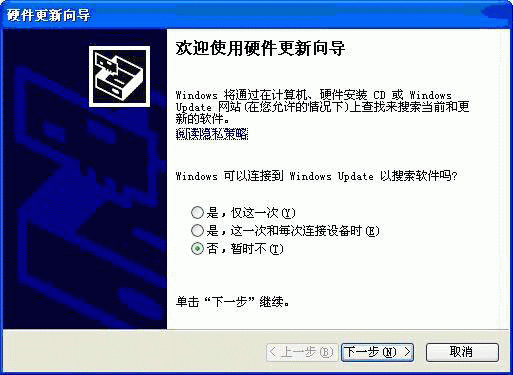 •  選擇上圖中的 否,暫時(shí)不 ( T ) ,然后點(diǎn)擊下一步: