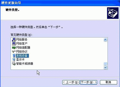 •  選擇上圖 硬件更新向?qū)?窗口中的 系統(tǒng)設(shè)備 ,然后點(diǎn)擊下一步,并且在出現(xiàn)的 硬件更新向?qū)?中左側(cè)窗口( 廠商 )選擇其中的 (標(biāo)準(zhǔn)系統(tǒng)設(shè)備) ,然后在右側(cè)窗口( 型號(hào) )中找到并雙擊 PCI standard ISA bridge 選項(xiàng):
