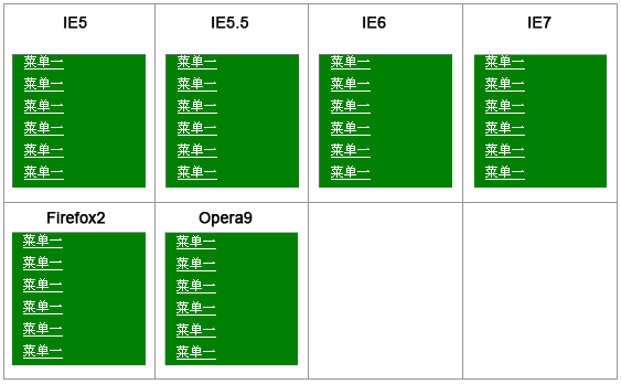 和測(cè)試一相比,只是將width:120px;從ul的定義放置到li的定義,解決了IE5和IE5.5左邊產(chǎn)生空白的問題,而IE5的li之間的間距還是有,如下圖: