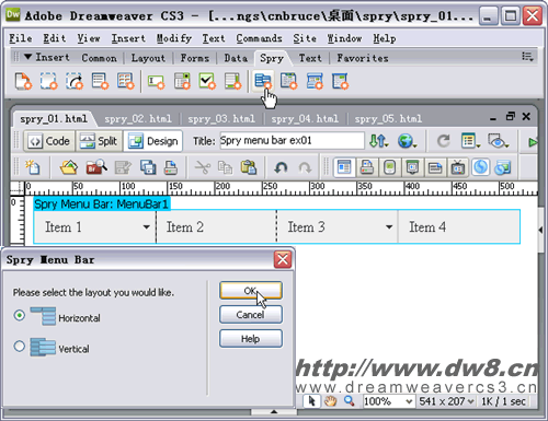 橫向菜單測(cè)試地址:http://www.dreamweavercs3.cn/demo/spry/spry_01.html