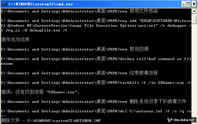 至此,這個貌似功能強(qiáng)悍的小瓢蟲就被徹底打掃干凈,可惜了我D盤上用來測試的這幾個EXE,已經(jīng)全部損壞,只能重新COPY個了。