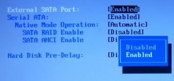2、更改 External SATA Port 選項為 Disabled 即可。