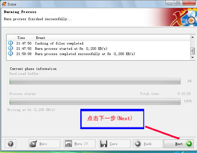 第六步:刻錄界面,此時不要點擊任何按鈕,否則會出現(xiàn)刻錯的可能.