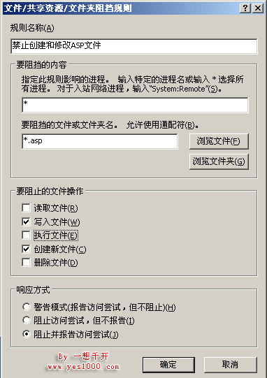 對于ASP文件,“黑客”是創(chuàng)建和修改,而我們只需要讀取和運行。那么,規(guī)則如下: