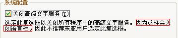 2.進(jìn)入“高級”標(biāo)簽,取消對“關(guān)閉高級文字服務(wù)”項(xiàng)的選擇即可(圖2)。如果要加快系統(tǒng)啟動速度或減少系統(tǒng)資源占用(高級文字服務(wù)中的手寫識別、語音識別和某些附加功能會影響計算機(jī)性能),可直接在任務(wù)欄的語言欄上的“鍵盤”狀圖標(biāo)上右鍵單擊,選擇“設(shè)置”命令,再勾選上述選項(xiàng)即可。