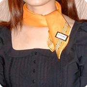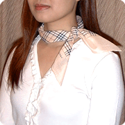 *將方巾重複對(duì)摺,梢微扭轉(zhuǎn)後繞在頸上.