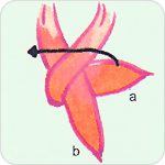 *較長(zhǎng)的 a 端繞過較短的 b 端,穿過領(lǐng)巾內(nèi)側(cè)向上拉出.