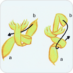 4、將旋轉(zhuǎn)完成的帶狀以逆時(shí)針方向用手指環(huán)繞于活結(jié)上。