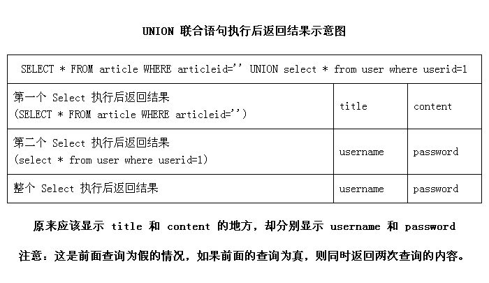 SELECT * FROM article WHERE articleid='$id' UNION SELECT * FROM user …… |