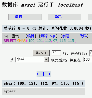 這樣我們就得出結(jié)果了,然后我們再用char()函數(shù)還原出來就好了。至于其他更多函數(shù),大家可以自己去試驗(yàn),限于篇幅也不多說了。