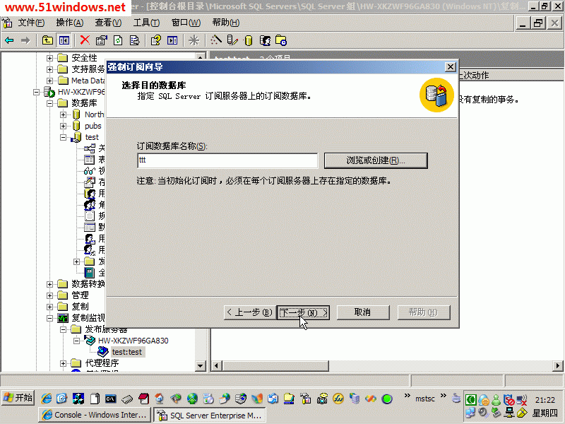 8、選擇訂閱服務(wù)器上的數(shù)據(jù)庫(kù)名稱
