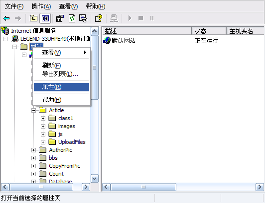 首先打開IIS管理器,右鍵點(diǎn)擊網(wǎng)站后,選擇屬性: