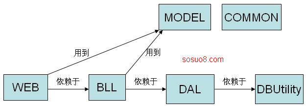 WEB :界面層,其實(shí)就是一個(gè)網(wǎng)站。BLL:邏輯處理層。