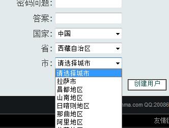 · 用戶注冊時需要選擇國家、省、市、地區(qū)等。