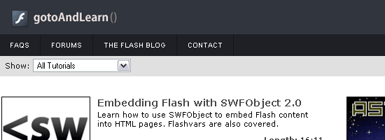 有些人學(xué)習(xí)的效果最理想,可視化和以下隨導(dǎo)師一步一步在實(shí)時(shí)時(shí)間。 如果您的類型喜歡學(xué)習(xí),看教學(xué)影片,請(qǐng)gotoandlearn.com -一個(gè)網(wǎng)站,由李b rimelow提供免費(fèi)的F lash視頻教程。