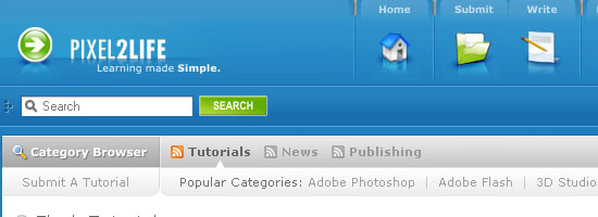 Pixel2Life ,根據(jù)該網(wǎng)站,是“最大的補(bǔ)習(xí)指數(shù)飲食,以平面設(shè)計(jì)師,網(wǎng)站管理員和程序員” 。 超過(guò)40000索引指南,您可以找到許多的鏈接教程在其閃光教程一節(jié)。