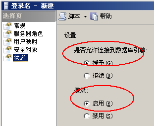 選中“狀態(tài)”選項卡,確?!暗卿洝痹凇皢⒂谩睜顟B(tài)、“是否允許連接到數(shù)據(jù)庫引擎”處于“授予”狀態(tài)。