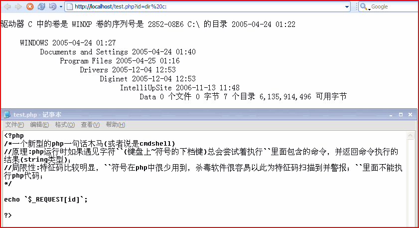 //局限性:特征碼比較明顯,``符號(hào)在php中很少用到,殺毒軟件很容易以此為特征碼掃描到并警報(bào);``里面不能執(zhí)行php代碼;