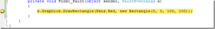 你現(xiàn)在可以使用F11進入Graphics.DrawRectangle的代碼了。在這個case中,你會先進入PaintEventArgs.Graphics屬性的代碼。