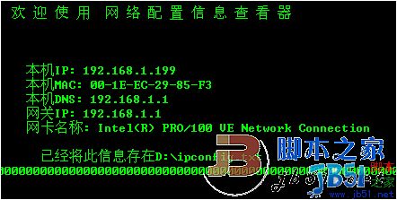 echo 已經將此信息存在D:\ipconfig.txt