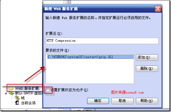 在Internet信息服務(wù)(IIS)管理器,右擊"Web服務(wù)擴(kuò)展"->"增加一個(gè)新的Web服務(wù)擴(kuò)展...",在"新建Web服務(wù)擴(kuò)展"框中輸入擴(kuò)展名"HTTP Compression",添加"要求的文件"為C:\WINDOWS\system32\inetsrv\gzip.dll,其中Windows系統(tǒng)目錄根據(jù)您的安裝可能有所不同,選中"設(shè)置擴(kuò)展?fàn)顟B(tài)為允許";