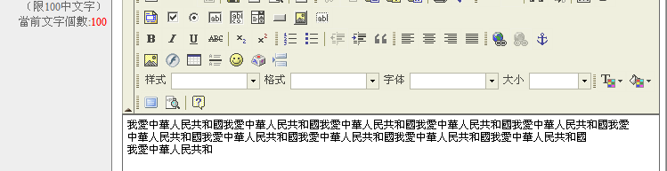 輸入多馀100個字符數 提示