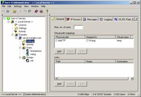 (1) 在Serv-U管理員窗口中,單擊服務(wù)器節(jié)點(diǎn)下的Settings節(jié)點(diǎn),選擇General選項(xiàng)卡。