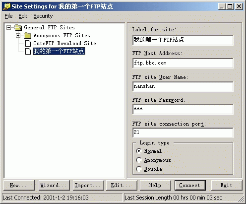 3、FTP客戶端應(yīng)用軟件的設(shè)置。比如在CuteFTP中,如下圖: