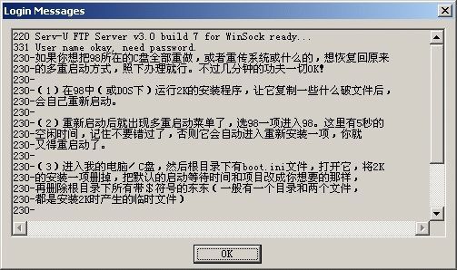 10、Logging message file(登錄信息文件):在這里可以輸入(或選擇)一個(gè)事先建立好的文本文件(一般)的完整路徑和文件名,登錄成功之后就會(huì)出現(xiàn)相關(guān)提示信息。提示信息如下圖: