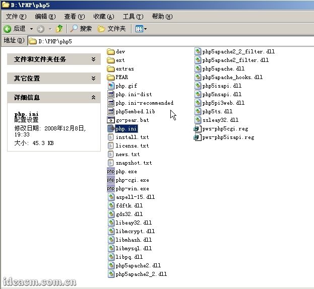 3.1.1、 將下載得到的php-5.2.8-Win32.zip文件解壓至D:\PHP目錄中,將得到的二級(jí)目錄php-5.2.8-Win32改名為php5;也可以將php-5.2.8-Win32.zip解壓在默認(rèn)位置,然后將解壓后的文件和文件夾復(fù)制到D:\PHP\php5【圖二所示】。