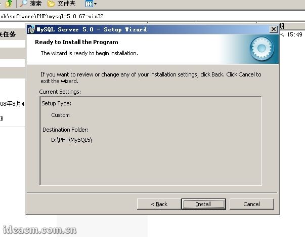 這個(gè)界面是前面一步步的設(shè)置預(yù)覽,如果前面設(shè)置有誤需要修改的,點(diǎn)擊[<Back]按鈕返回,按照需求修改。如果確認(rèn)沒有問題,就直接點(diǎn)擊[Install]按鈕進(jìn)行安裝。
