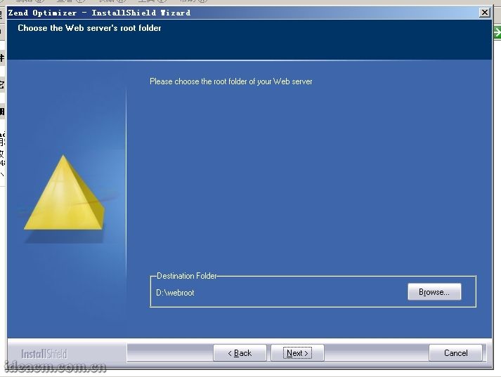 這里是選擇你的網(wǎng)站所在目錄,這里你可以根據(jù)自己的默認(rèn)站點(diǎn)目錄來選,也可以直接選擇到D:\PHP\Zend,為了規(guī)范網(wǎng)站目錄結(jié)構(gòu),我這里把預(yù)備建立的網(wǎng)站都放在D:\webroot目錄下,所以我把的路徑修改為D:\webroot【圖五十四所示】