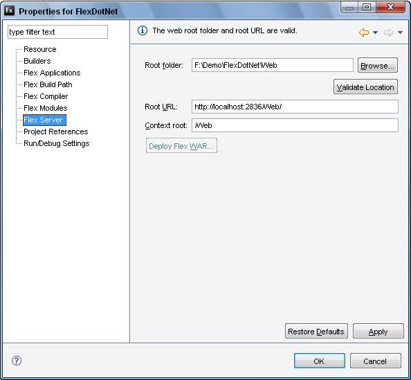 設(shè)置Flex Server為如下配置,可以點(diǎn)“Validate Location”驗(yàn)證設(shè)置的正確性: