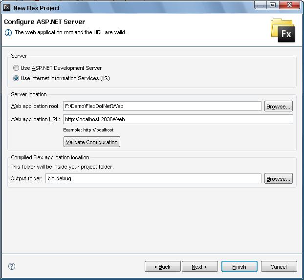 按照上面步驟配置好后通過點(diǎn)擊“Validate Configuration”進(jìn)行配置驗(yàn)證,如過驗(yàn)證結(jié)果是: The web application root and the URL are valid.則代表配置正確,可以直接點(diǎn)下一步只到完成項(xiàng)目的創(chuàng)建。