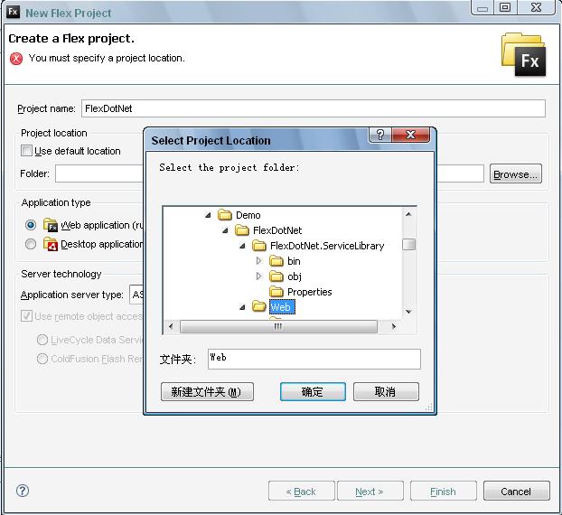 有了上面這些東西配置Flex就簡單了,首先創(chuàng)建Flex項(xiàng)目,并將項(xiàng)目路徑指向前建立的FluorineFx網(wǎng)站的根路徑: