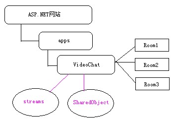 除了聊天室和應(yīng)用的層次外,應(yīng)用程序里還有諸入視頻流、共享對象等。他們可以共同應(yīng)用,也可以為不同的房間分別建立不同的共享對象,如果你要想實(shí)現(xiàn)不同房間里的用戶可以相互聊天不想讓別的房間的人看到,OK,此時(shí)你就可以為該房間獨(dú)立創(chuàng)建一個共享對象來實(shí)現(xiàn)。