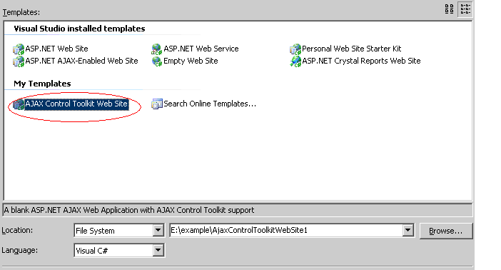 和以前每個控件一樣,我們需要先建立一個ajaxtoolkit模版: