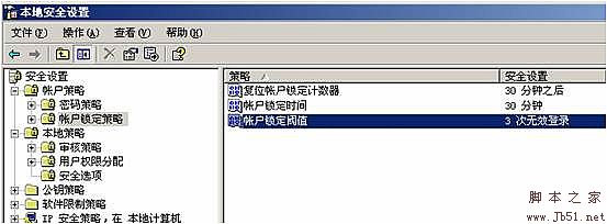 7.配置帳戶鎖定策略(在運行中輸入gpedit.msc回車,打開組策略編輯器,選擇計算機(jī)配置-Windows設(shè)置-安全設(shè)置-賬戶策略-賬戶鎖定策略,將賬戶設(shè)為“三次登陸無效”,“鎖定時間30分鐘”,“復(fù)位鎖定計數(shù)設(shè)為30分鐘”。)